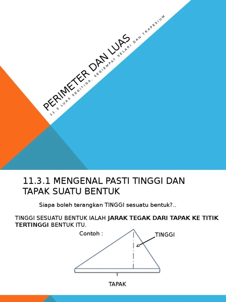 Rumus luas segi empat selari untuk panjang sisi dan tinggi. Perimeter Dan Luas Luas Segitiga Segiempat Selari Dan Trapezium Pdf